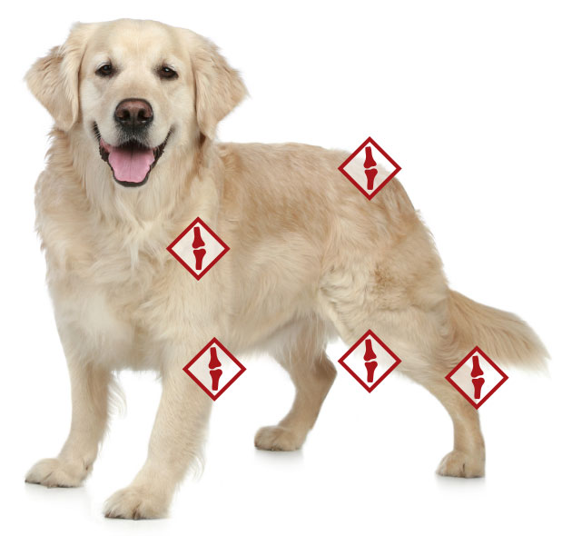 This is a painful disease that diminishes your dog's ability to walk normally. The most frequent symptoms are: lameness, painful joint palpation, difficulty to climb up and/or down the stairs and changes in the normal gait.